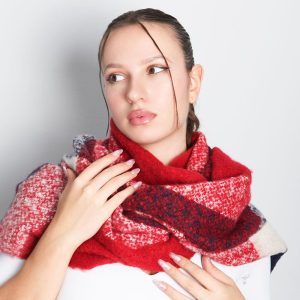 Κασκόλ με Κρόσσια σε Καρό άσπρη, κόκκινη, μαύρη Απόχρωση