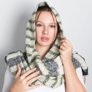 Χειμωνιάτικο Ζεστό Κασκόλ με Κρόσσια Γκρι-Μπέζ