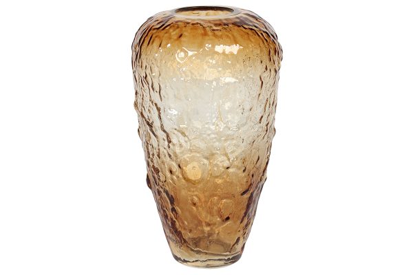 Ανθοδοχείο γυάλινο σε μελί απόχρωση. Έχει ανάγλυφο σχέδιο. Έχει μοντέρνο μίνιμαλ σχέδιο για να ταιριάζει σε όλους τους χώρους. Οι διαστάσεις του βάζου είναι 13 εκ. φάρδος και 22 εκ. ύψος.