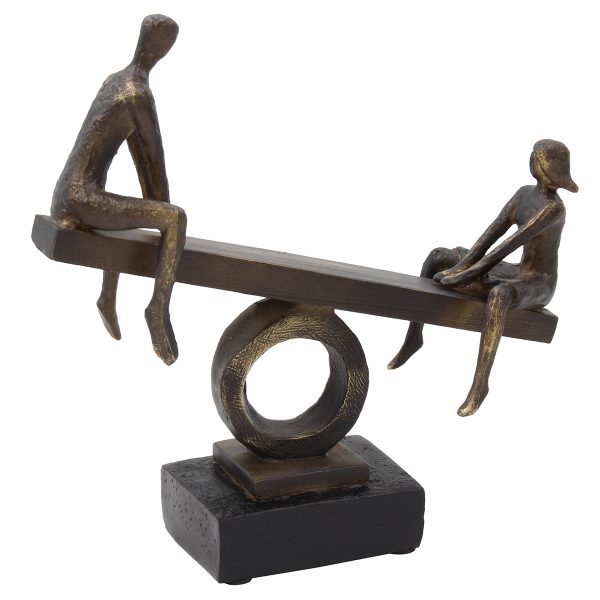 Διακοσμητικό τραμπάλα μαύρο μπρονζε με αγορι και κορίτσι. Αυτό το επιτραπέζιο διακοσμητικό είναι κατασκευασμένο από polyresin, ένα υλικό που προσφέρει αντοχή και λεπτομέρεια στις διακοσμητικές εφαρμογές. Οι διαστάσεις του είναι 21Χ6,5Χ21 εκ. Είναι ιδανικό για να προσθέσει μια κομψή και καλαίσθητη πινελιά στο χώρο σας, είτε πρόκειται για το σπίτι είτε για τον επαγγελματικό σας χώρο.