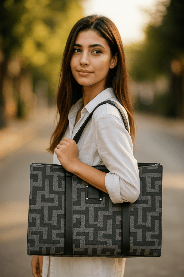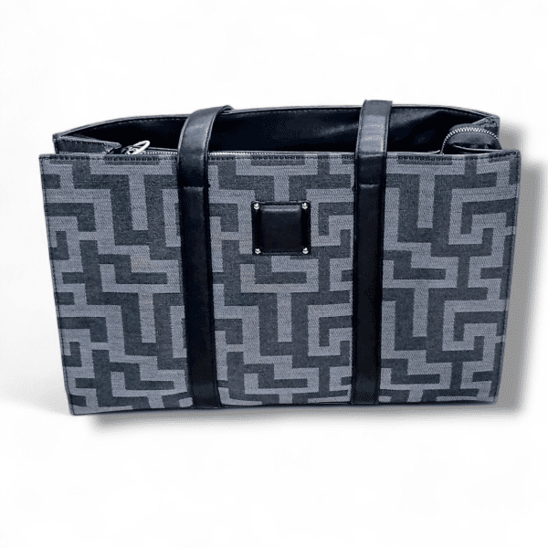 Τσάντα ώμου μαίανδρος σε γκρι-μαύρη απόχρωση. Είναι κατασκευασμένη από υφαντό ύφασμα και διαθέτει πολλές θήκες και χωρίσματα εσωτερικά. Έχει ένα έξτρα τσεπάκι στο πίσω μέρος και πάτο από δερματίνη. Έχει ιμάντα για να μπορεί να κρατηθεί και χιαστί. Οι διαστάσεις της τσάντας είναι 44*27*14 εκατοστά. Θα την παραλάβετε σε συσκευασία δώρου!